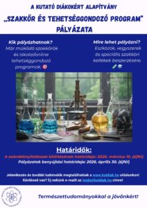 Pályázati programunk célja azoknak a már működő (legkésőbb a 2025/26-os tanévben elindult) azon szakkörök és/vagy iskolai online tehetséggondozó programok támogatása, amelyek elősegítik a diákok természettudományos pályára való felkészülését.